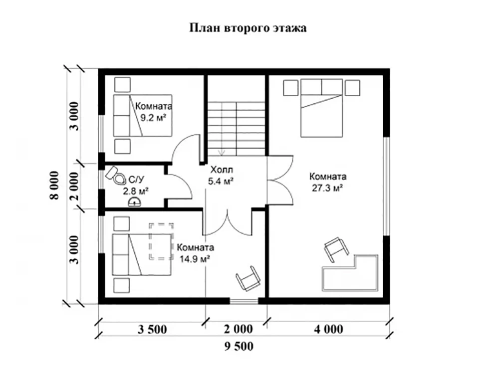 Проект каркасного дома «НОВОРОССИЙСК» 8х9.5 м имеет доступные комплектации: «Тёплый контур», «Комфорт», «Премиум» с такими отличительными параметрами как: